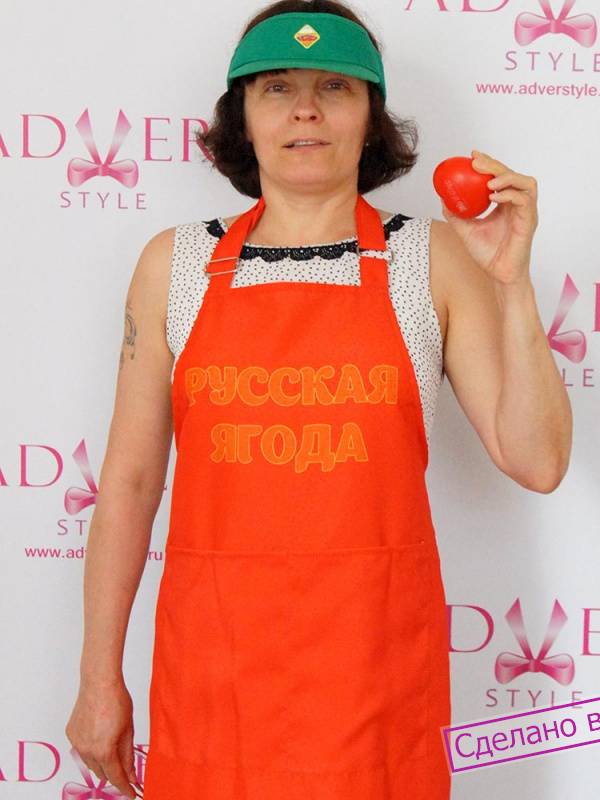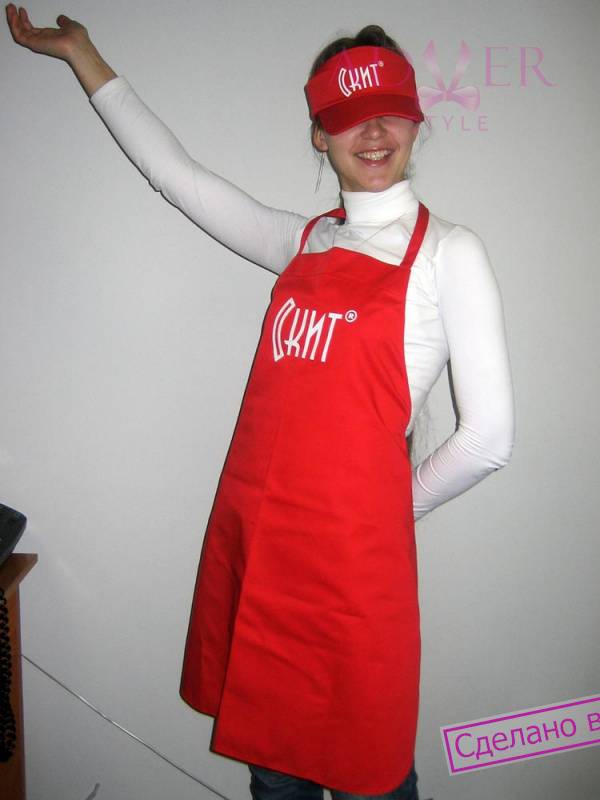 Фартук с идентикой хорошо сочетается с козырьком или бейсболкой и рубашкой.