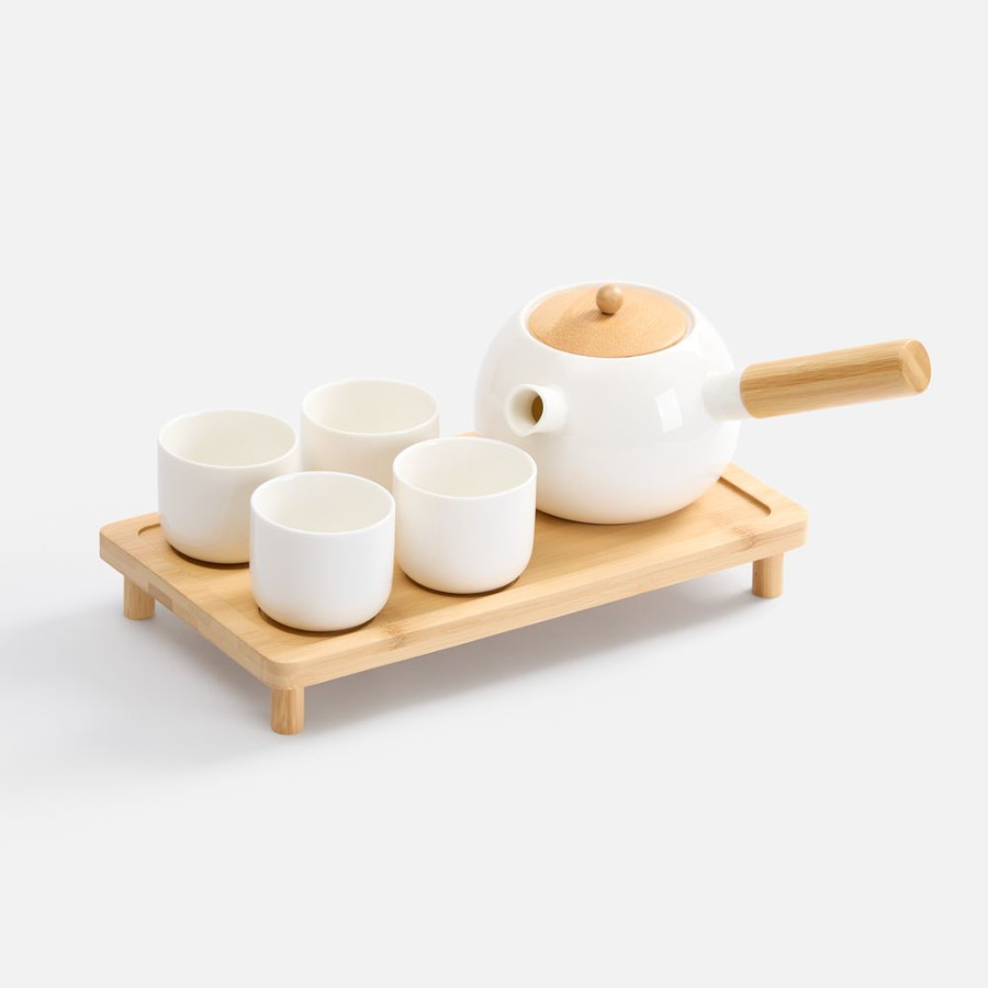 Сочетание белой глазурованной керамики и бамбука ассоциируется со спокойствием, аккуратностью и продуманным минимализмом — удачная современная комбинация японской эстетики и скандинавской простоты. Емкость чайника 550 мл.