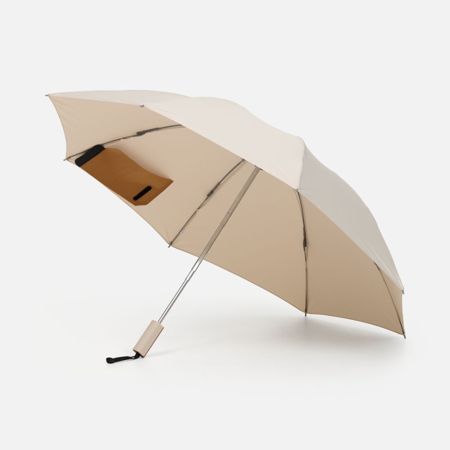 Складываясь после дождя, он прячет мокрую поверхность внутри, а сухая остается снаружи: в закрытом положении зонт не побеспокоит окружающих и не намочит одежду. Благодаря застежке на ремешке зонт удобно подвесить, например, на рюкзак.
