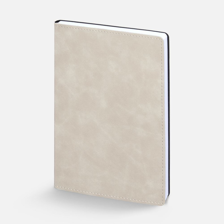 Ежедневник в клетку, с гибкой обложкой, выполнен из материала Nubuck Touch, светло-коричневый WW, дополнен ляссе бежевого цвета.