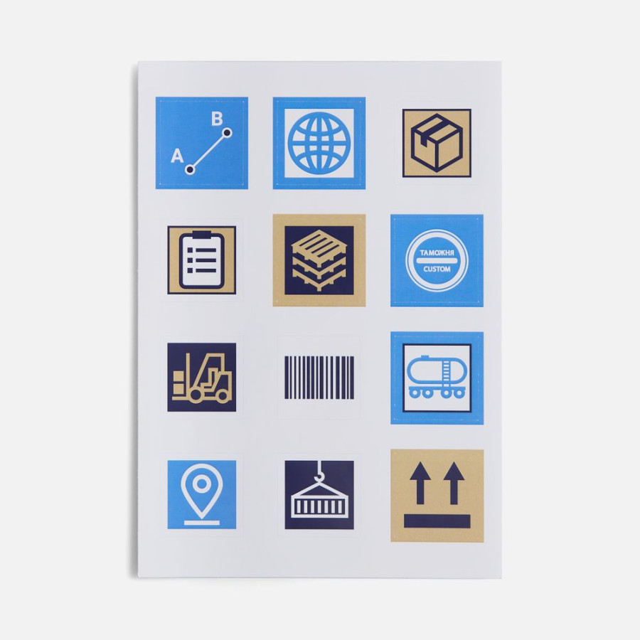 В каждой части общего рисунка изображены главные символы, связанные с логистикой.
