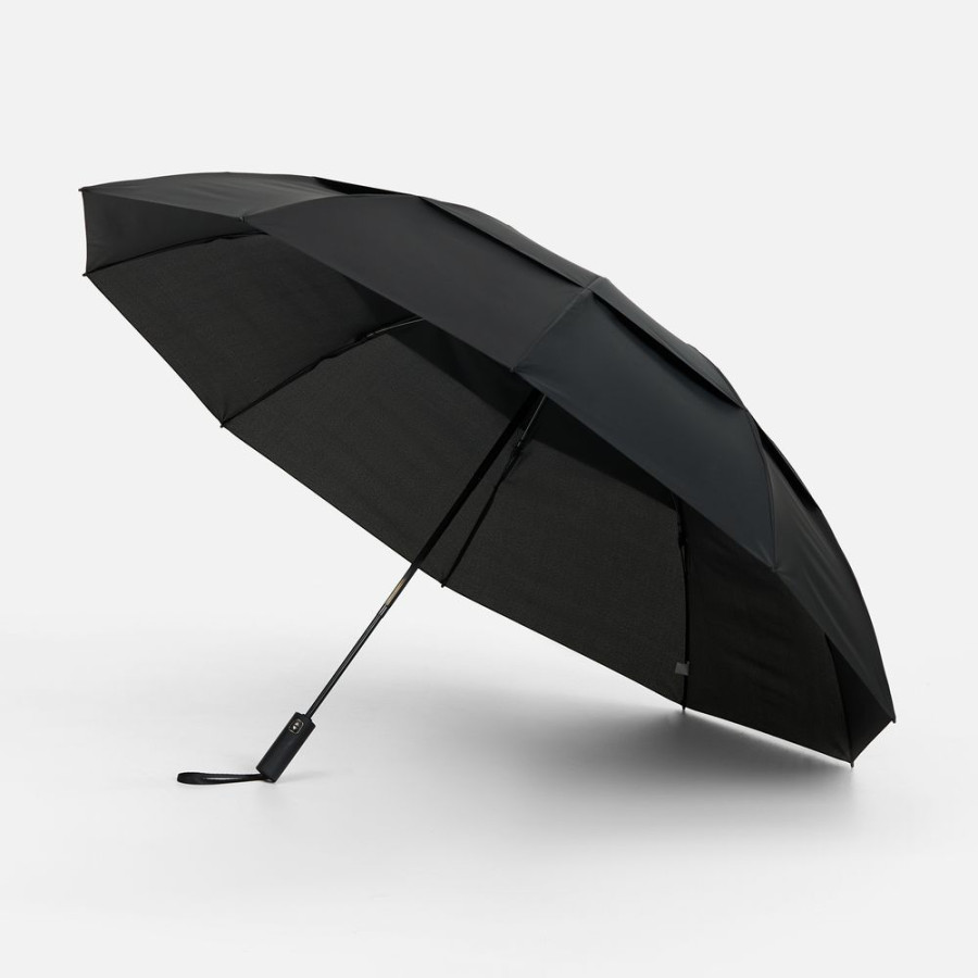 Складываясь после дождя, зонт прячет мокрую поверхность внутри, а сухая остается снаружи: так в закрытом положении он не побеспокоит окружающих и не намочит одежду. В сложенном виде зонт компактен, а благодаря чехлу-сумке на кулиске его удобно носить с собой.