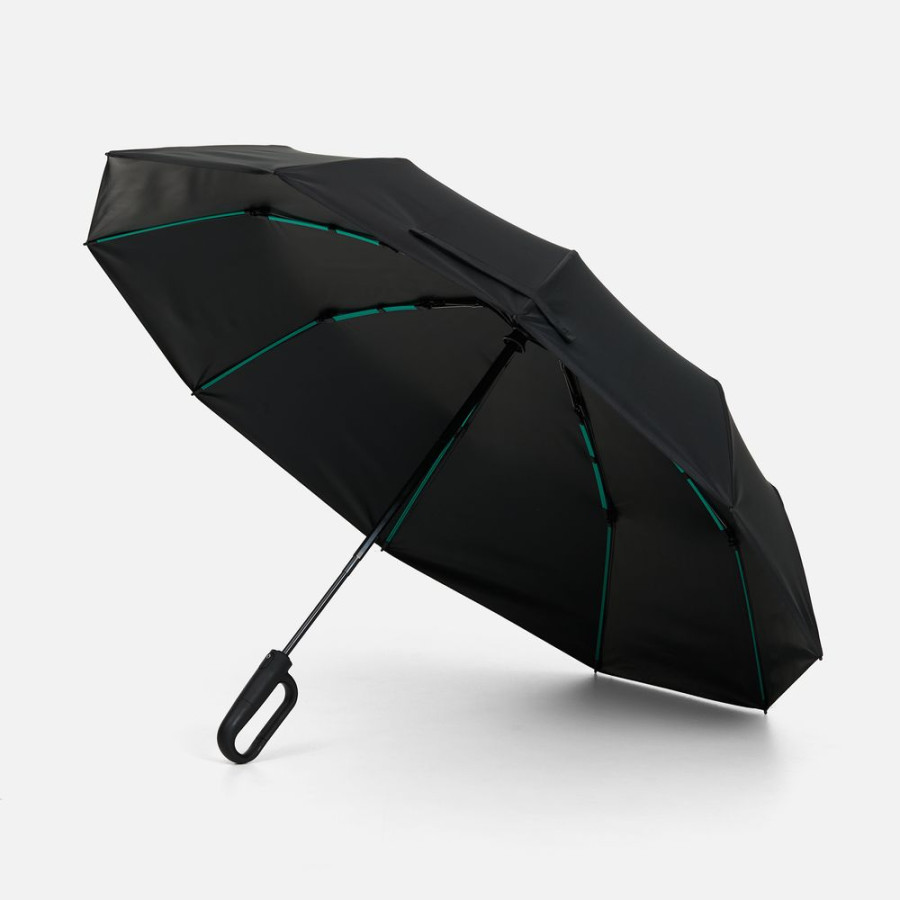 За ручку-карабин удобно подвесить зонт на рюкзак или сумку, покрытие от ультрафиолета защитит в самый солнечный день, а усиленные тройные спицы из стеклопластика выдержат коварные порывы ветра.