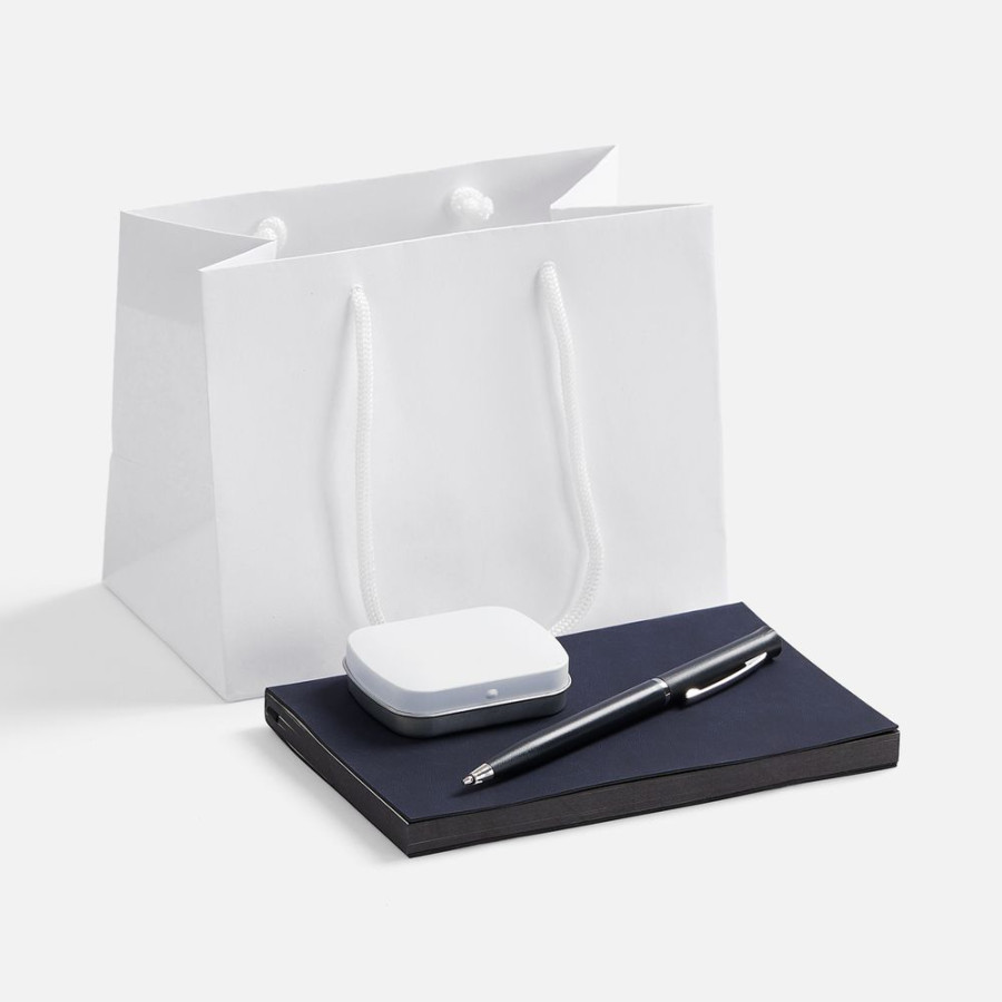 Компактная упаковка делает набор удобным для раздачи большому количеству людей, а практичная начинка позволит использовать подарок в работе и повседневной жизни.
