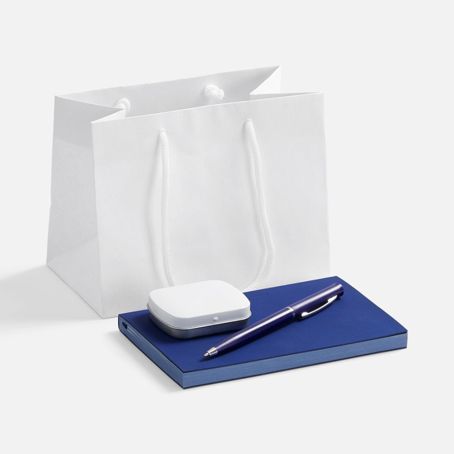 Компактная упаковка делает набор удобным для раздачи большому количеству людей, а практичная начинка позволит использовать подарок в работе и повседневной жизни.