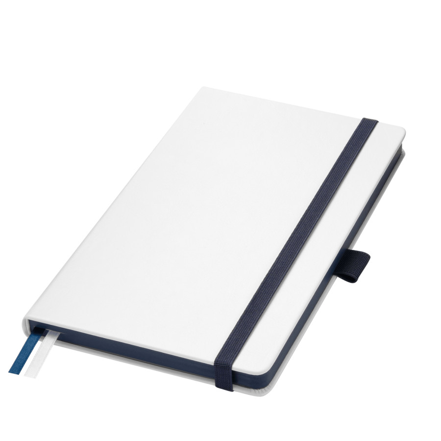 Недатированный ежедневник выполнен в жесткой обложке из искусственной кожи со скругленными уголками. Переплетный материал гладкий, с легкой естественной паутинкой морщин, имеет полуглянцевый блеск. Цвет – чистый белый. Серые матовые форзац и нахзац, а также синий срез блока создают оригинальный динамичный цветовой ансамбль и подчеркивают белизну обложки. Страницы светло-кремового цвета, из гладкого офсета, слегка шелковистые, со скругленными уголками. Добавляют изделию мягкую комфортную теплоту. Двойное атласное ляссе составлено из синей и белой лент. Каждая шириной 6 мм, имеет легкий блеск. Вертикальная фиксирующая резинка прочная, надежная и удобная, в тон срезу. Есть петелька для ручки в тон резинки. Карман на заднем форзаце.