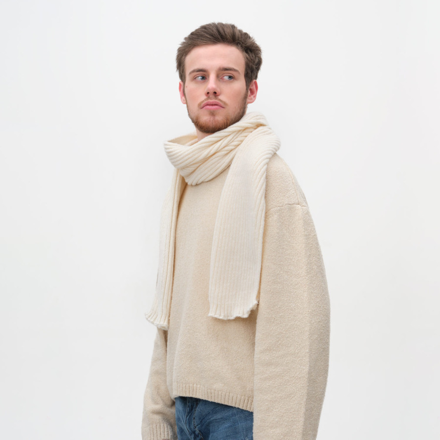 Шарф представлен в универсальном бежевом цвете, который легко сочетается с любым стилем одежды. Выбирая шарф Forges, вы дарите не только тепло, но и заботу о комфорте и хорошем самочувствии.