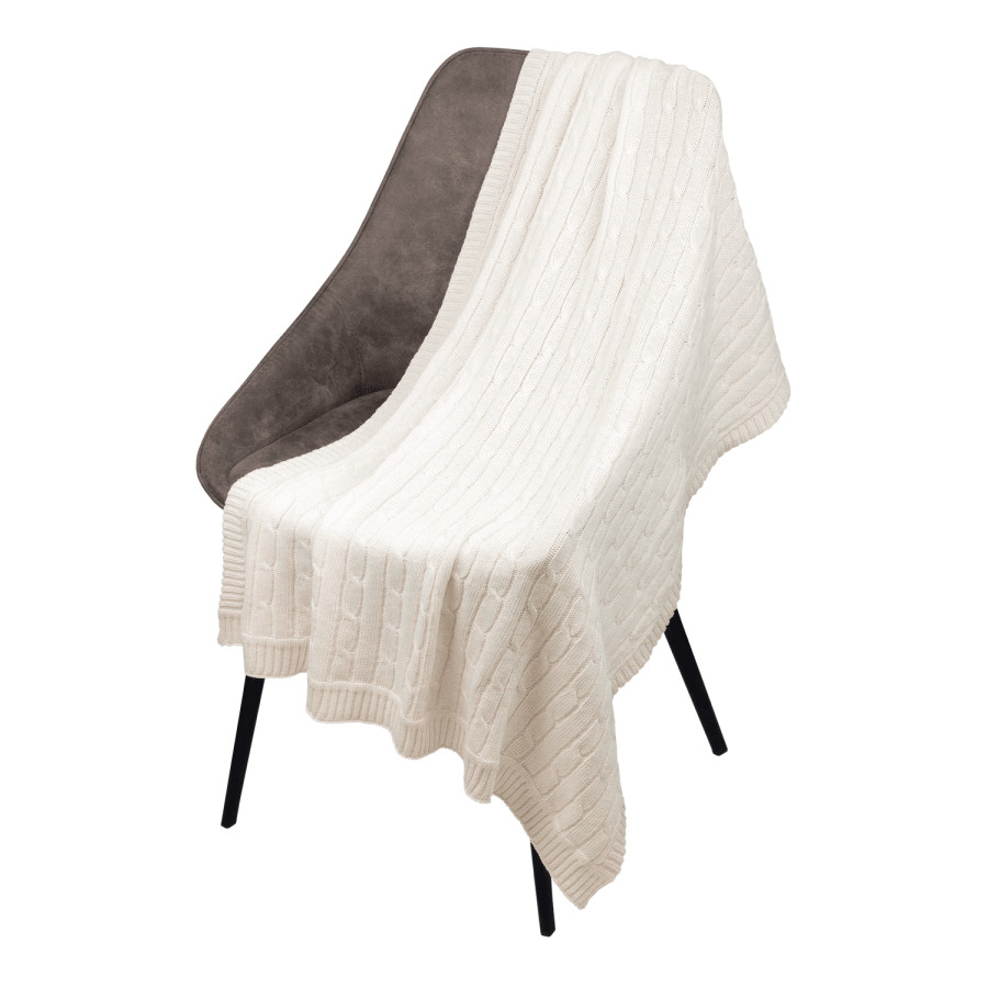 Плед Fado с фактурной вязкой «косы» станет вашим незаменимым спутником как дома, так и на природе. Берите его с собой в путешествия – лёгкий и компактный, он не займет много места в багаже.