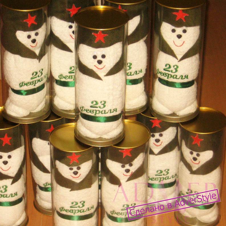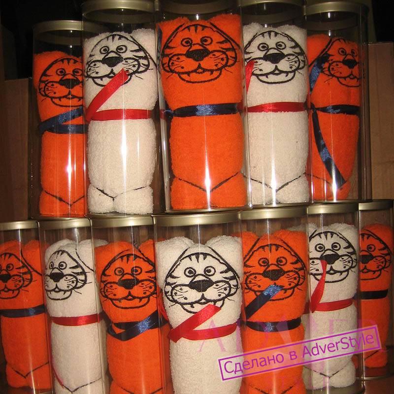 У нас можно заказать полотенца с вышивкой по вашему образцу, свёрнутые в виде игрушечных фигурок. Это могут быть фигурки представителей разных профессий, животных и т.д.